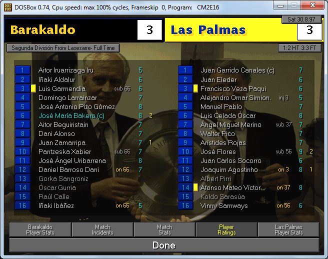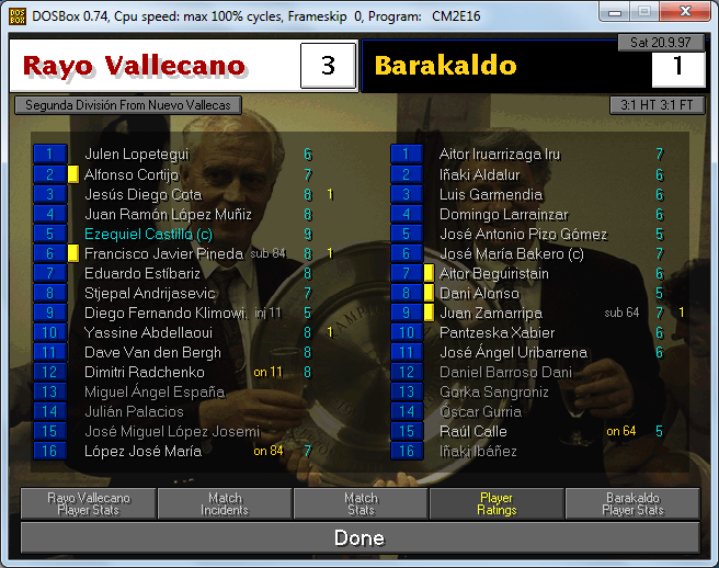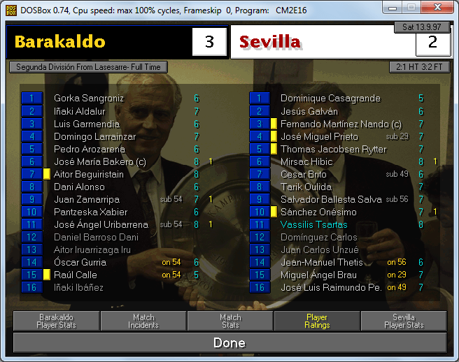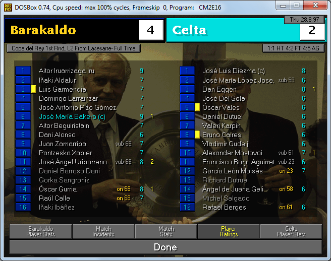 A good performance overall. The early lead from Hibic is quickly neglected by Zamarripa. Uribarrena adds one more after a pass from Begiristain, and we lead at halftime. Briefly after starting the second half, Bakero with a powerful header puts us up 3-1. From the on, we didn’t create many more chances and Sevilla got closer. Despite the anxiety of an equaliser, they can’t make it and we take a valuable win.