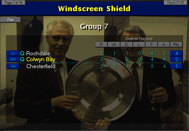 Meanwhile, Chesterfield and Rochdale played their match for the Windscreen Shield Groups. Rochdale won 2-1, and that means we advance to the next round where we will meet Oldham Athletic.