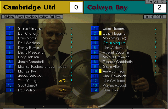 Cambridge United 0 – Colwyn Bay 2
