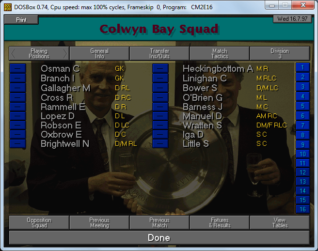 Usually when I’m starting in lower divisions, I pick 442 direct but this time I’ll be trying something that has worked for me in Scotland’s lower level and that I used in Arsenal with good results For those who have played CM 01/02, you’ll know this one as IodineCF
