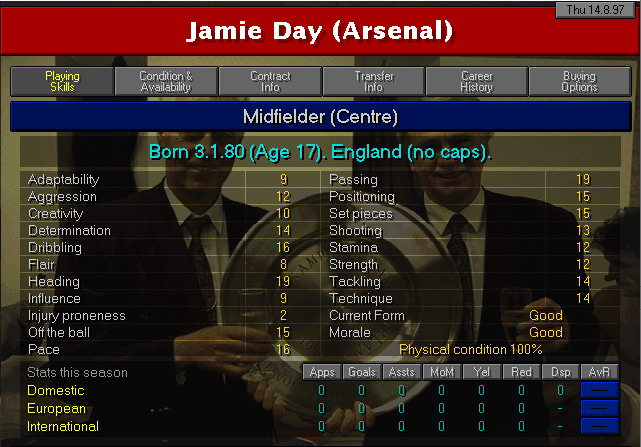 I’m able to deal with this currently, but in any case I’ll go out on the market to find a useful midfielder which I can bring on loan. Curiously, Arsenal recalled Jamie Day from Doncaster, and placed him as available to go on loan.