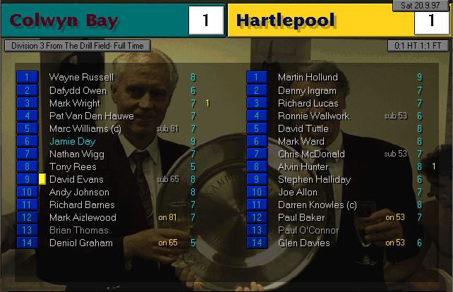 Early lead from Hartlepool when Halliday plays through a lovely slide ball which Hunter, their left forward, fires low into the bottom corner. From then on, we trade blows until we finally managed to beat Hollund from a corner kick action.