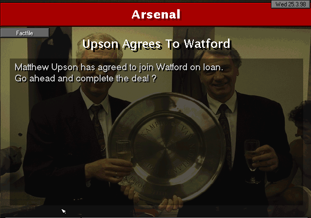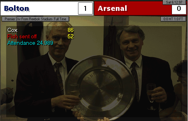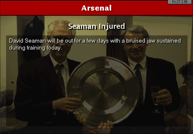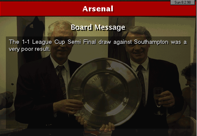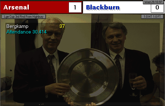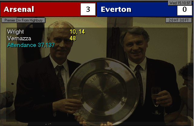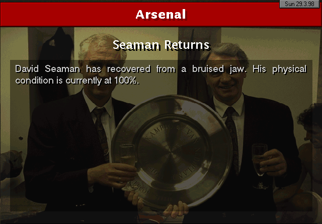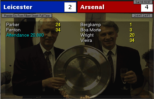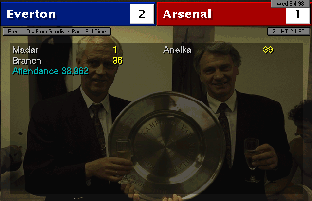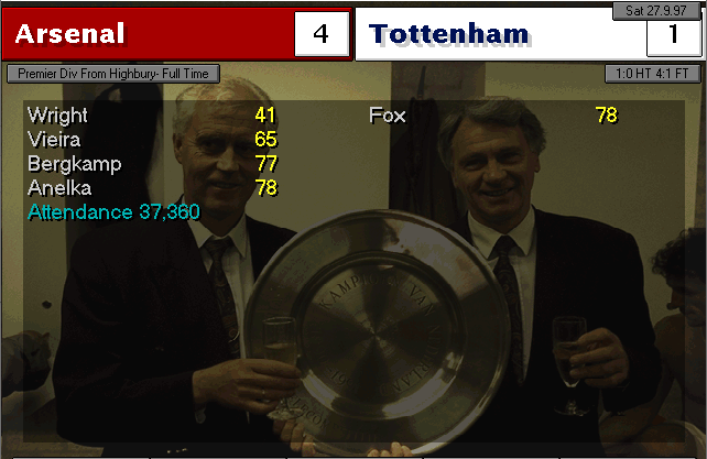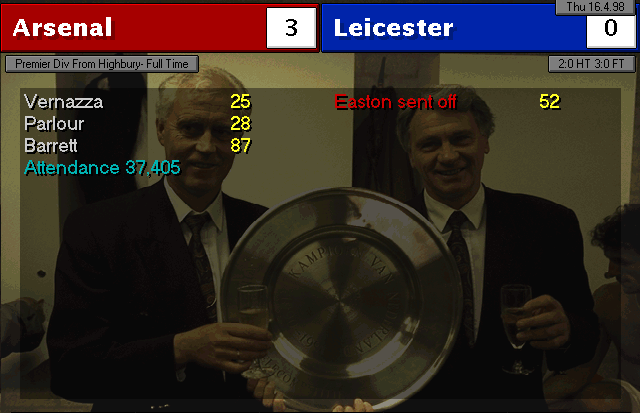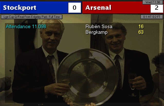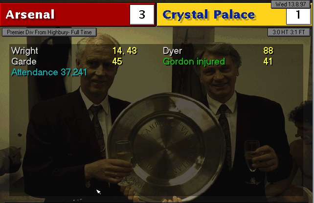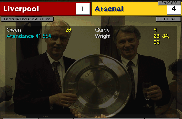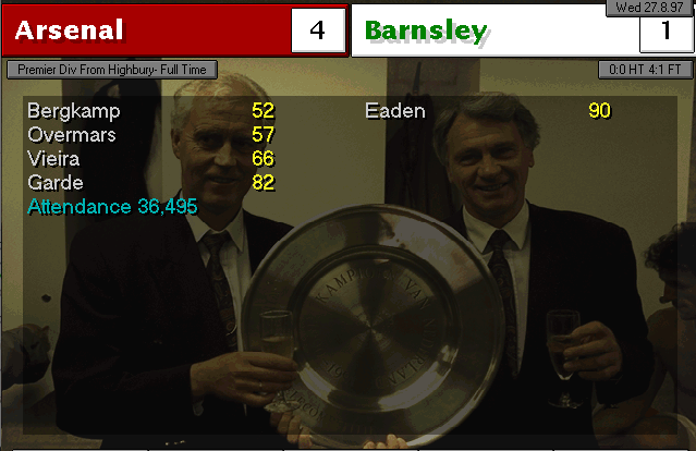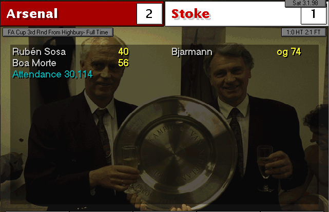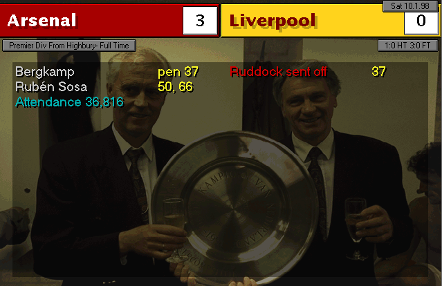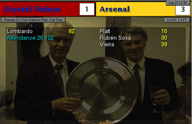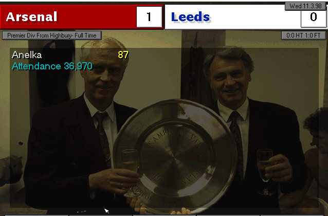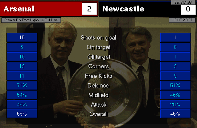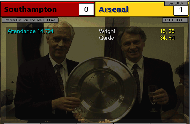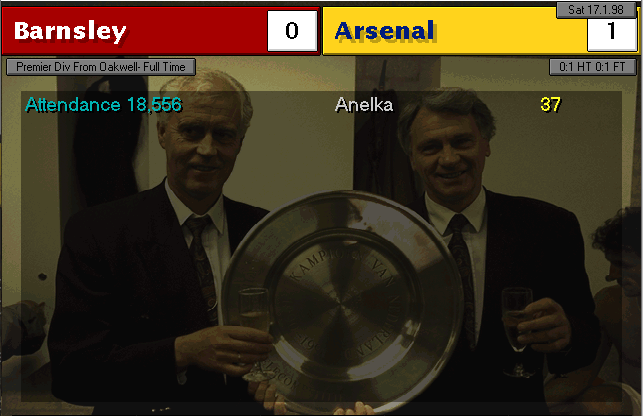 Wimbledon strikes first in this two-horse race. An unfortunate mistake by Martin Keown in the very last minute of the match couldn’t be stopped by Seaman and it goes into the back of the net. Neither of our lads were able to change the game and we leave with a defeat. We’re still leaders nonetheless, 3 points ahead of Wimbledon..
