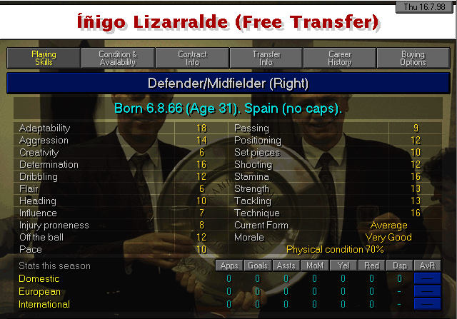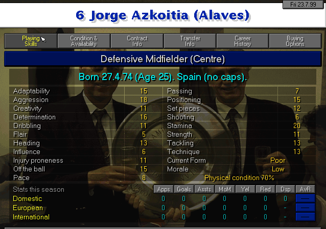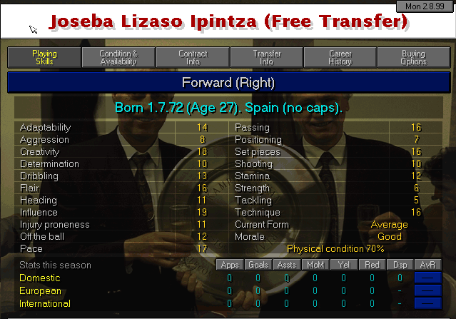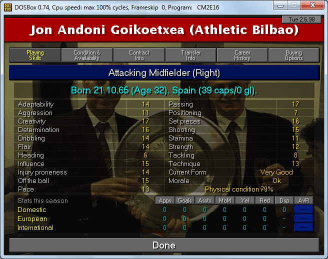 Native of Zestoa, Guipuzkoa. Despite what you may see from his attributes, his numbers weren’t really all that good. He underperformed at Cacereño and in his former club, Maritimo. Anyway, there aren’t a lot of available options in the market so he’ll have to do I guess.